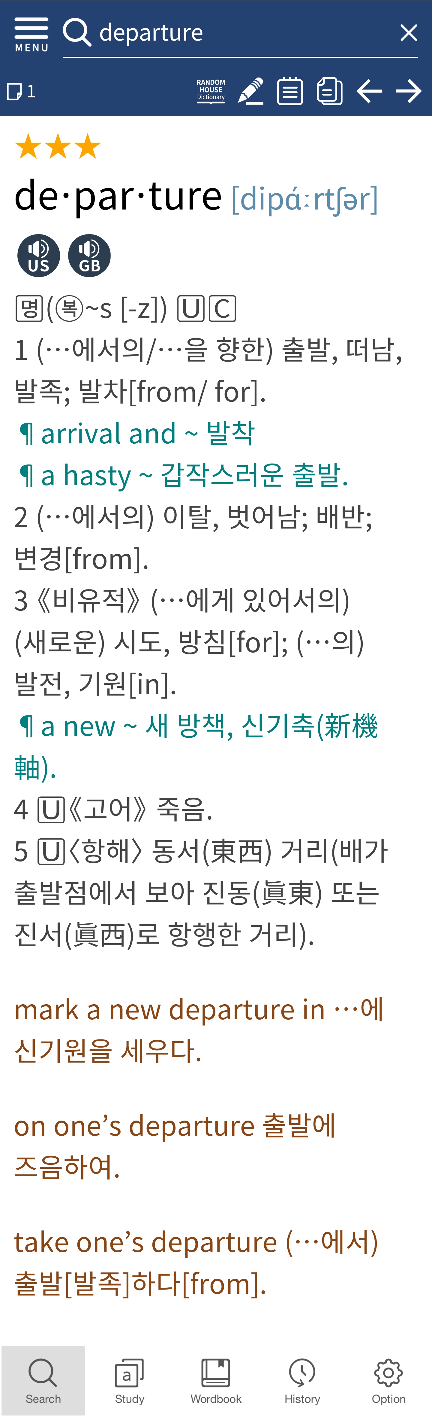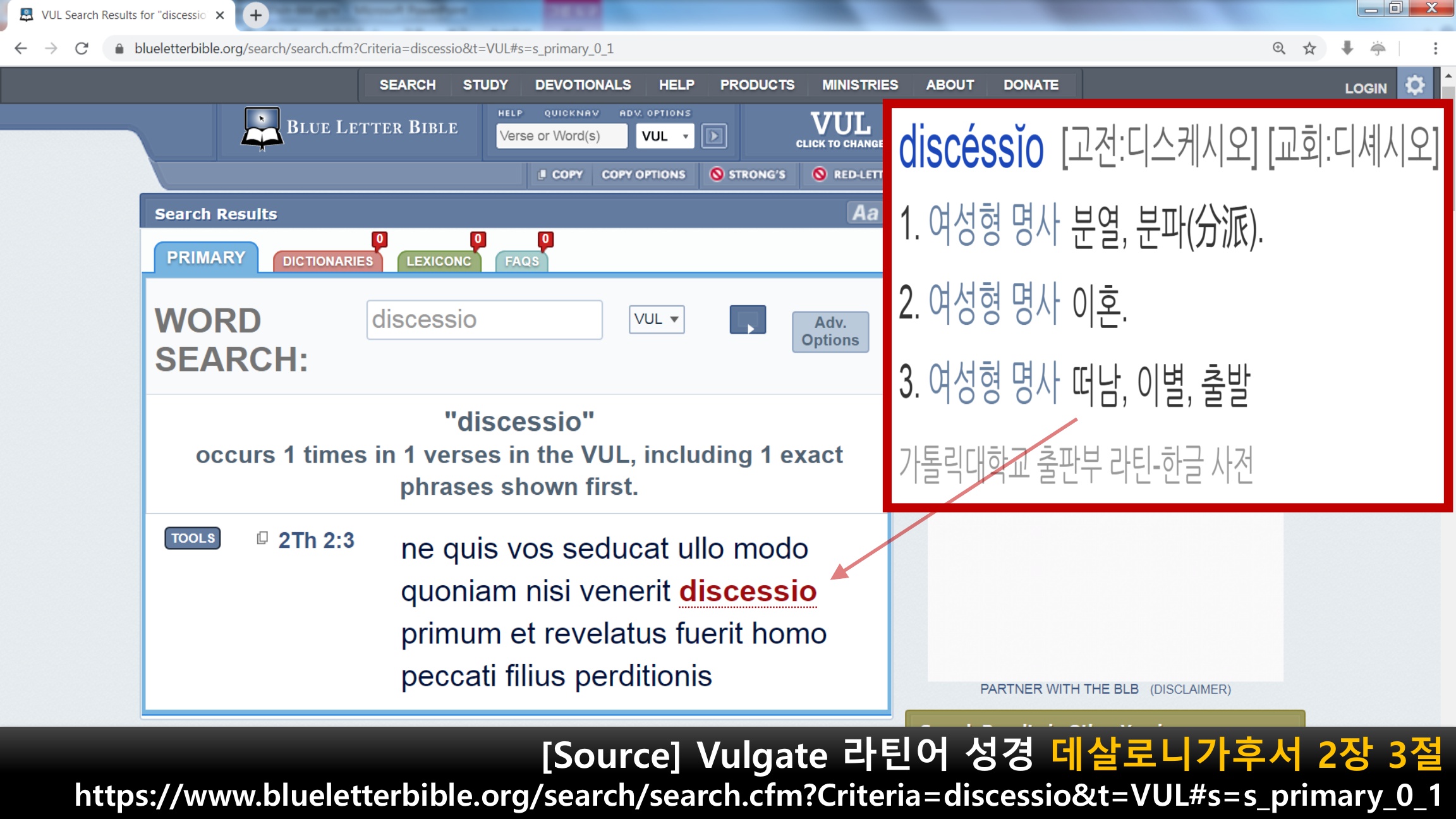떠나감, discessio, departynge 이 있다고 합니다.