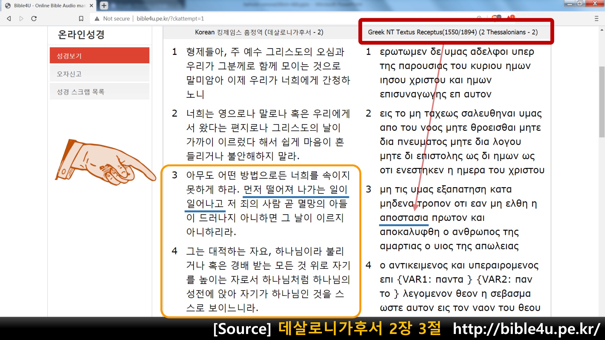 데살로니가후서 2장 3절에서 ‘a falling away’에 대해,