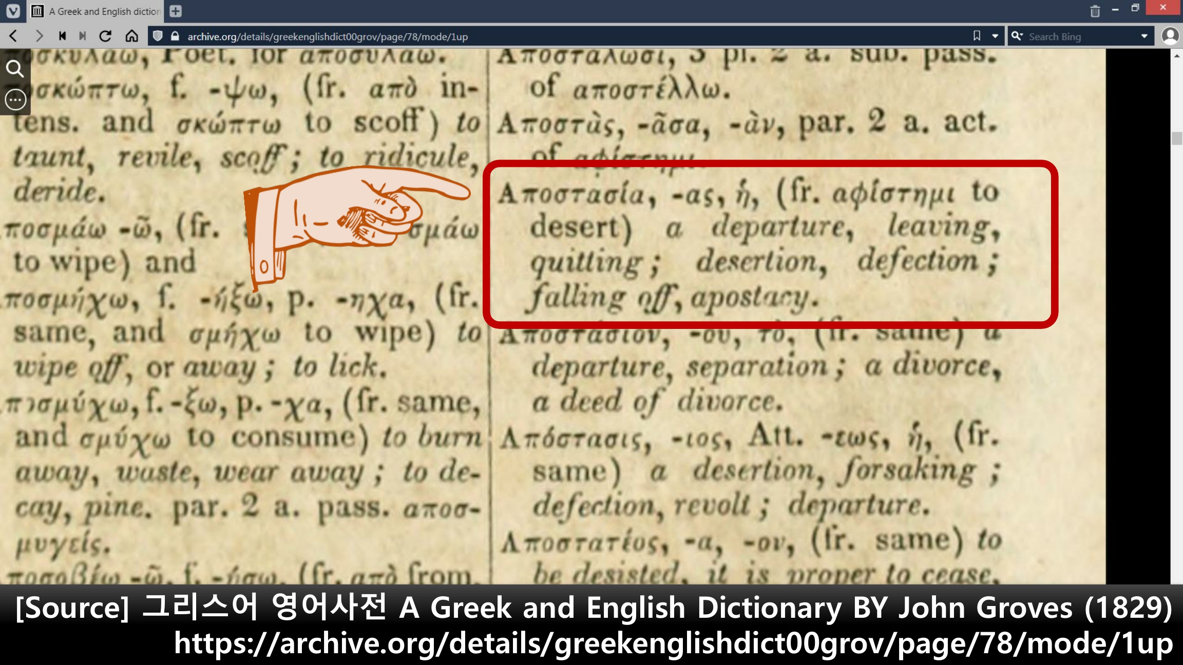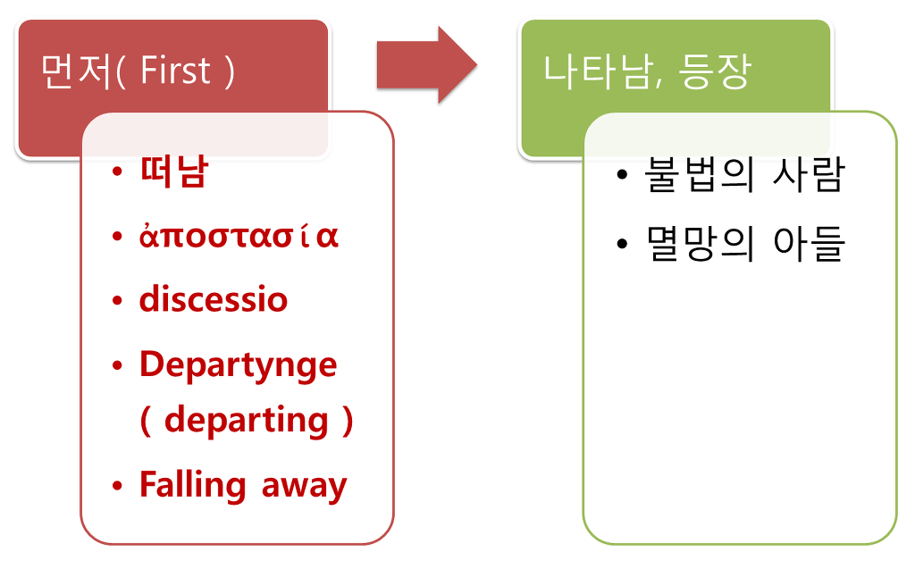 데살로니가후서 2장 3절에서 ‘a falling away’에 대해, (살후 2:3) 『아무도 어떤 방법에 의해서든지 너...