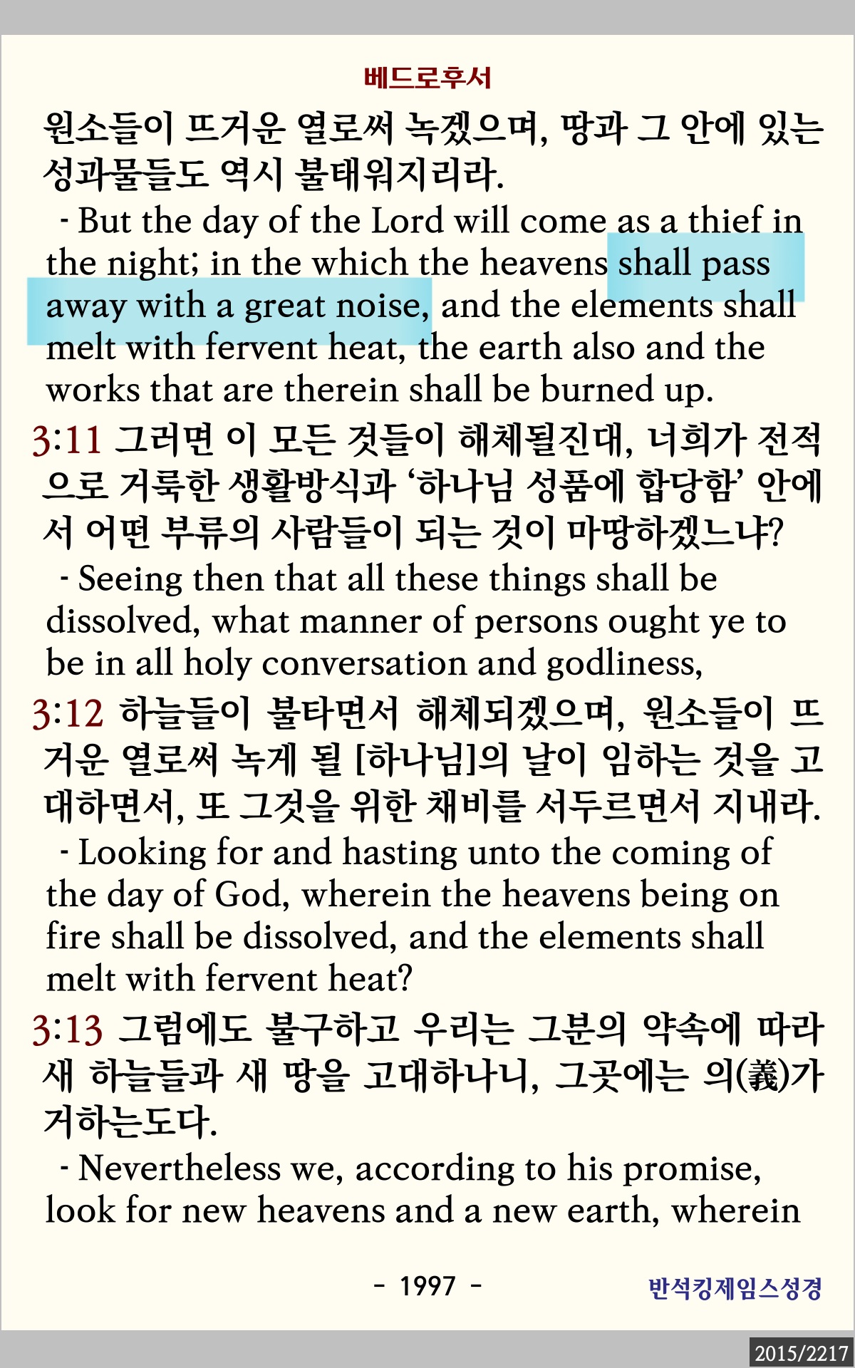 그날에 대한 결정은 아버지 [하나님]의 주권입니다.