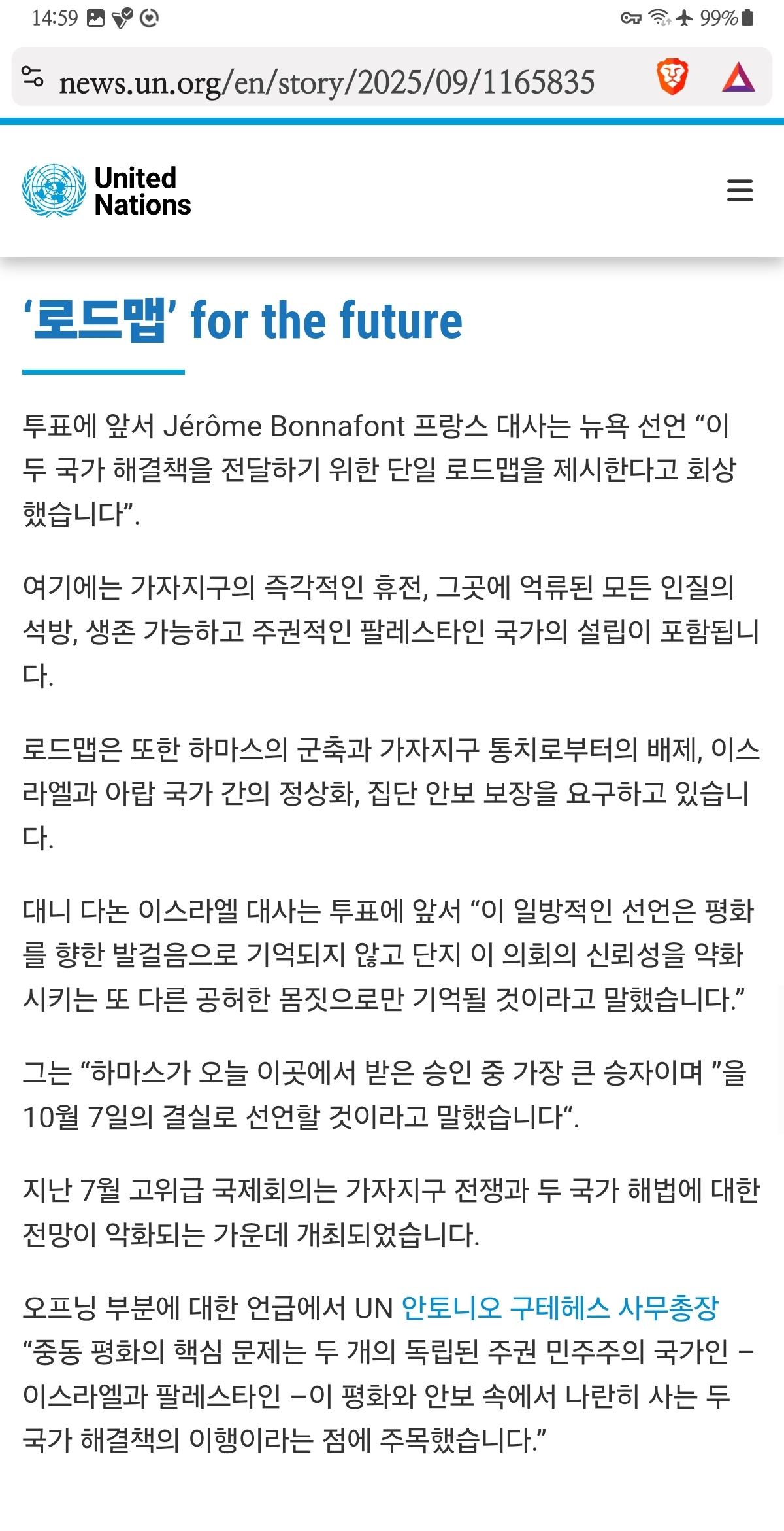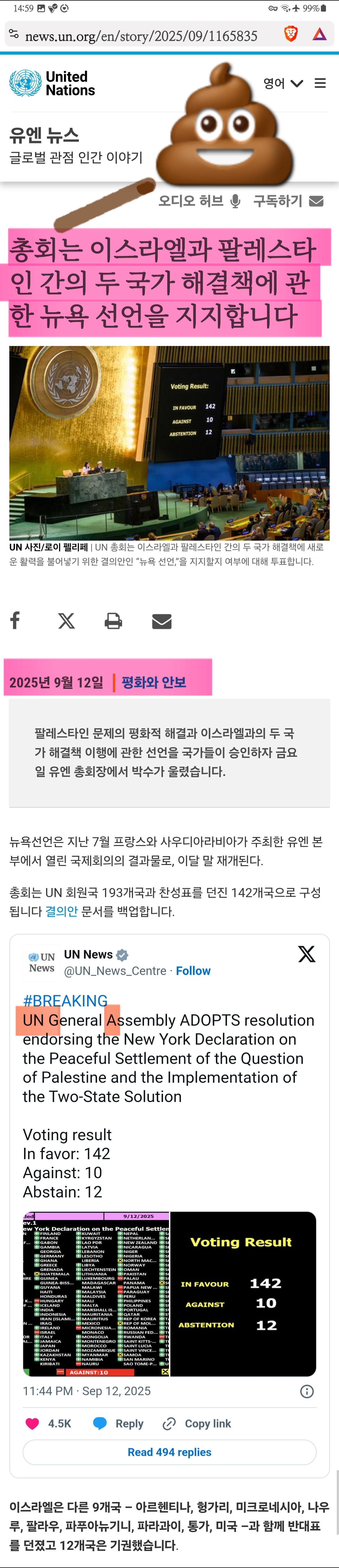 출처: https://x.com/UN_News_Centre/status/1966513311547032059