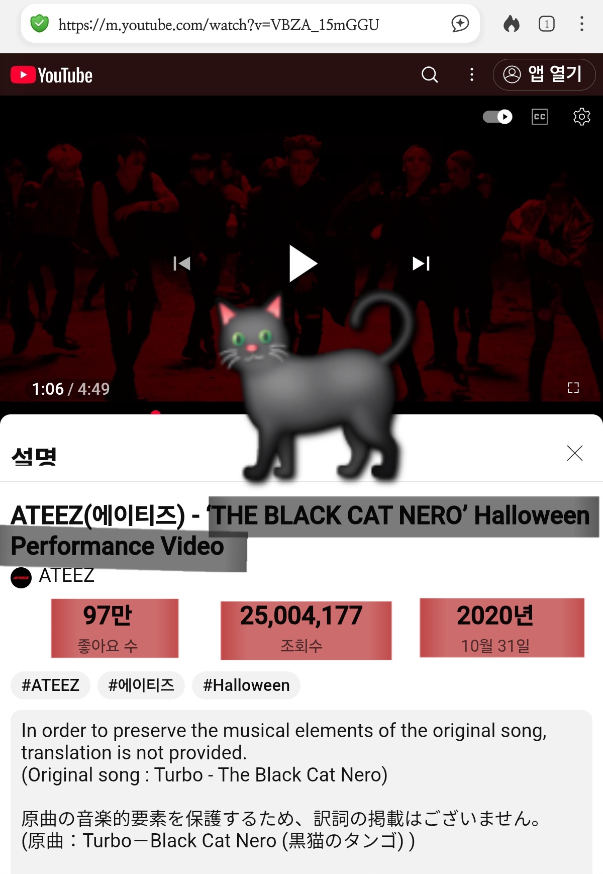 에이티즈가 검은 고양이 네로를 리메이크 했습니다.