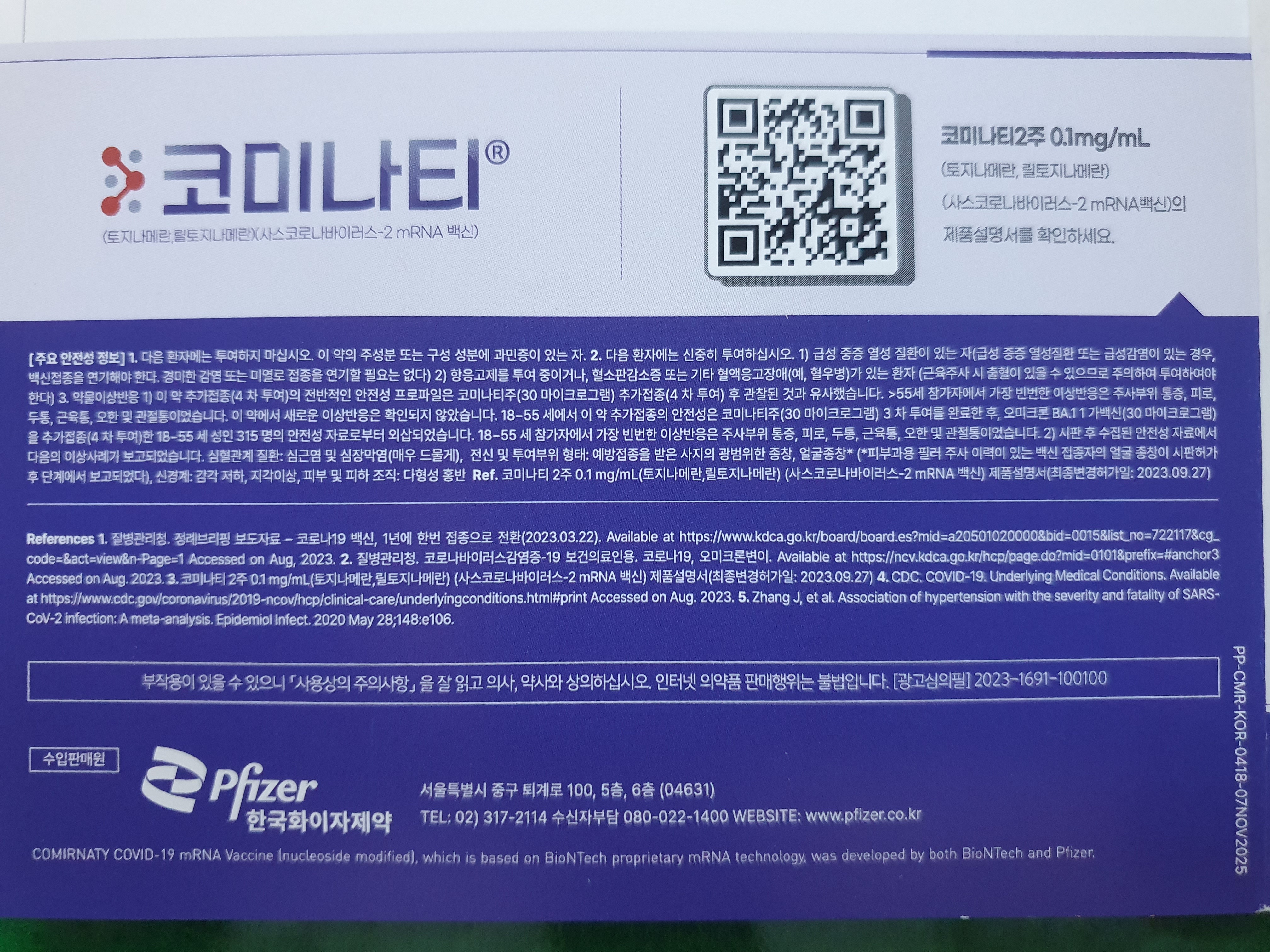 문헌출처: https://www.pfizer.co.kr/files/COVID_20220913.pdf