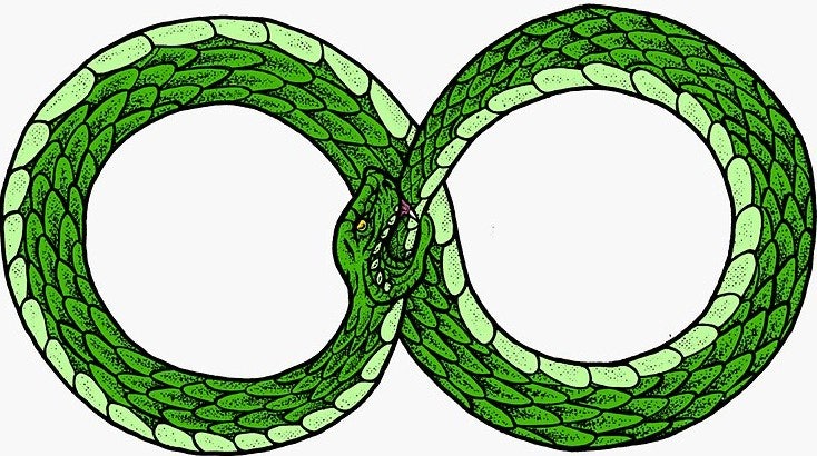 이것은 무한대(infinity) 기호 형태로 자기 꼬리를 물고 있는 우로보로스(ouroboros) 뱀입니다.