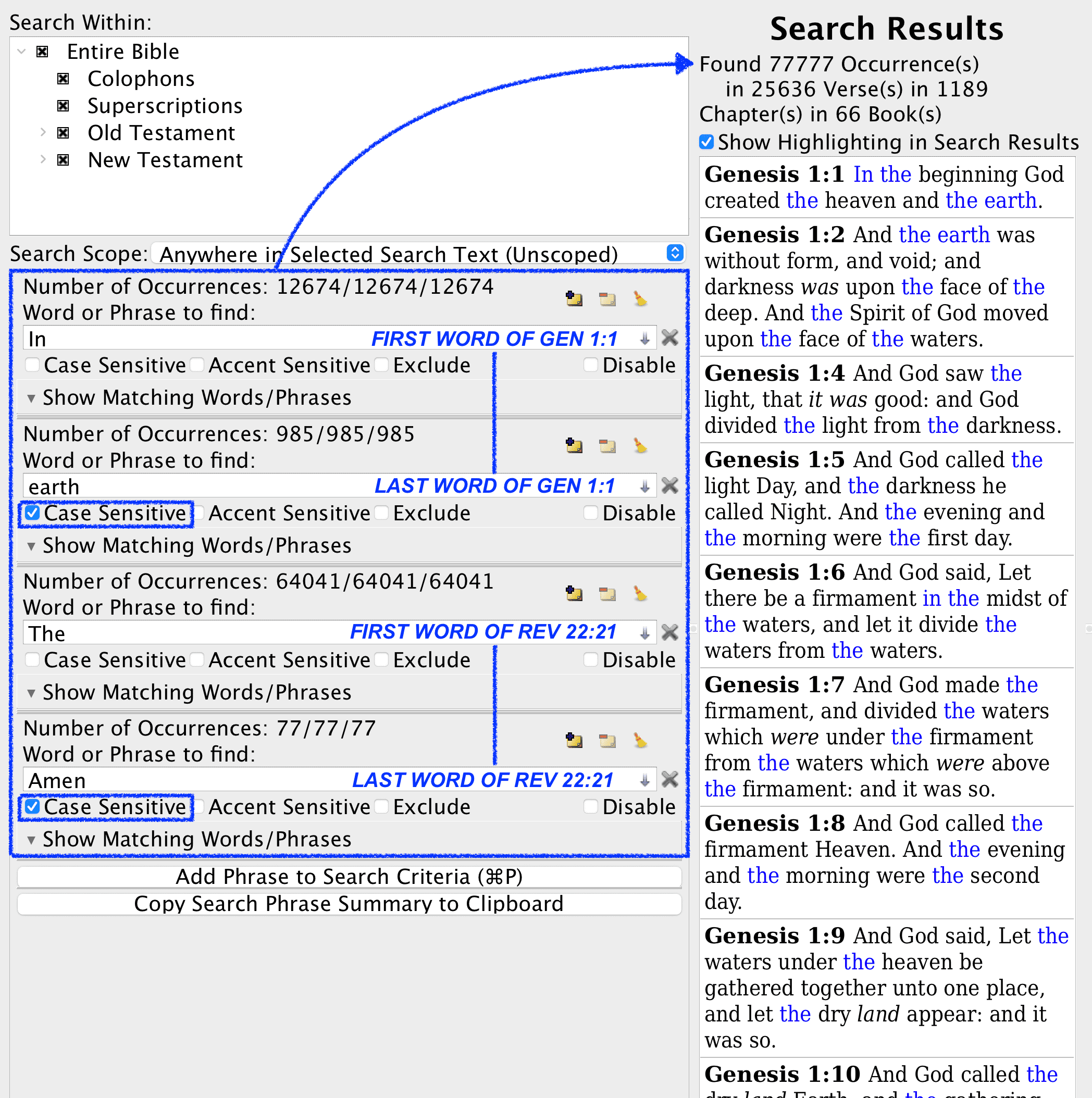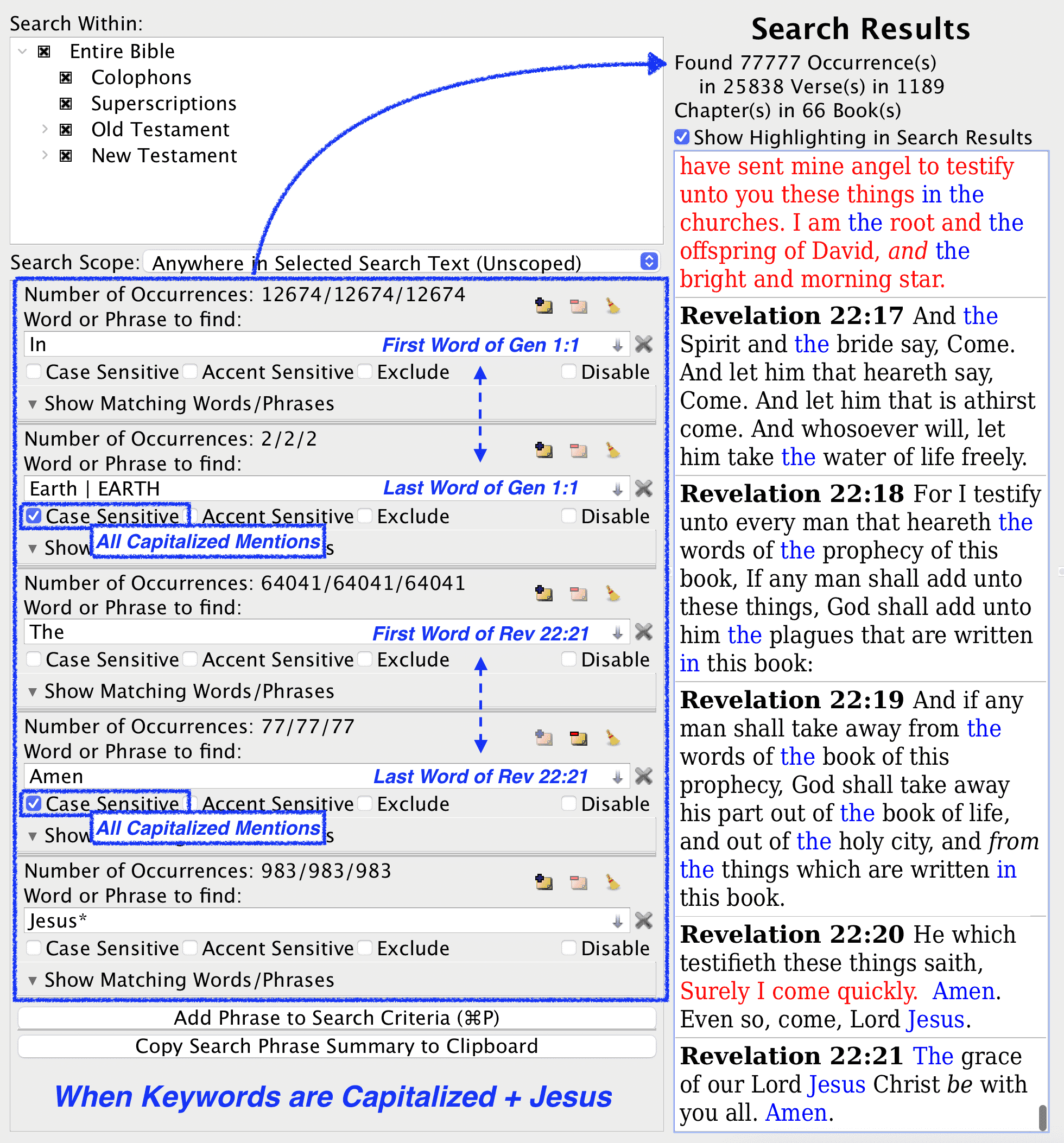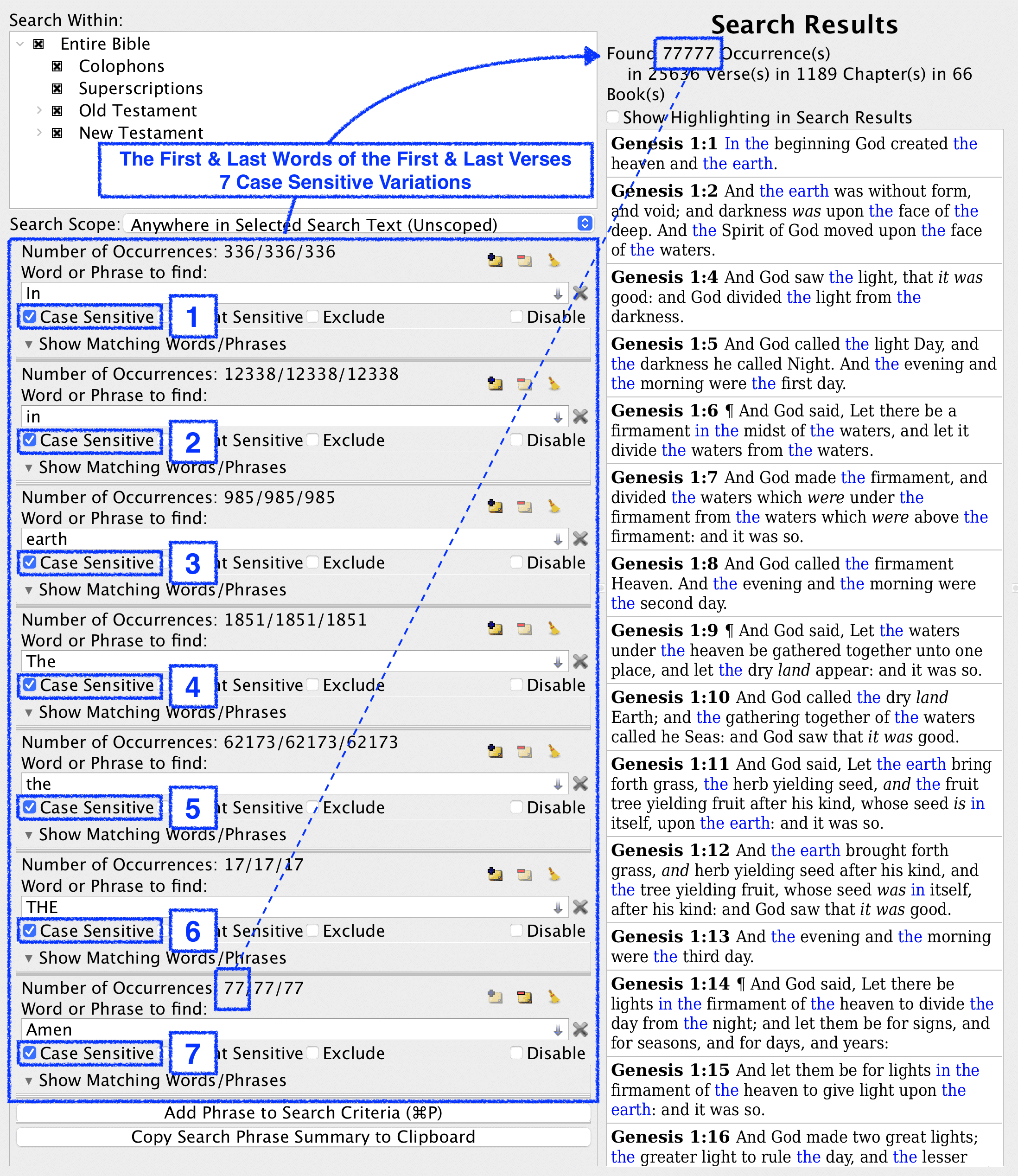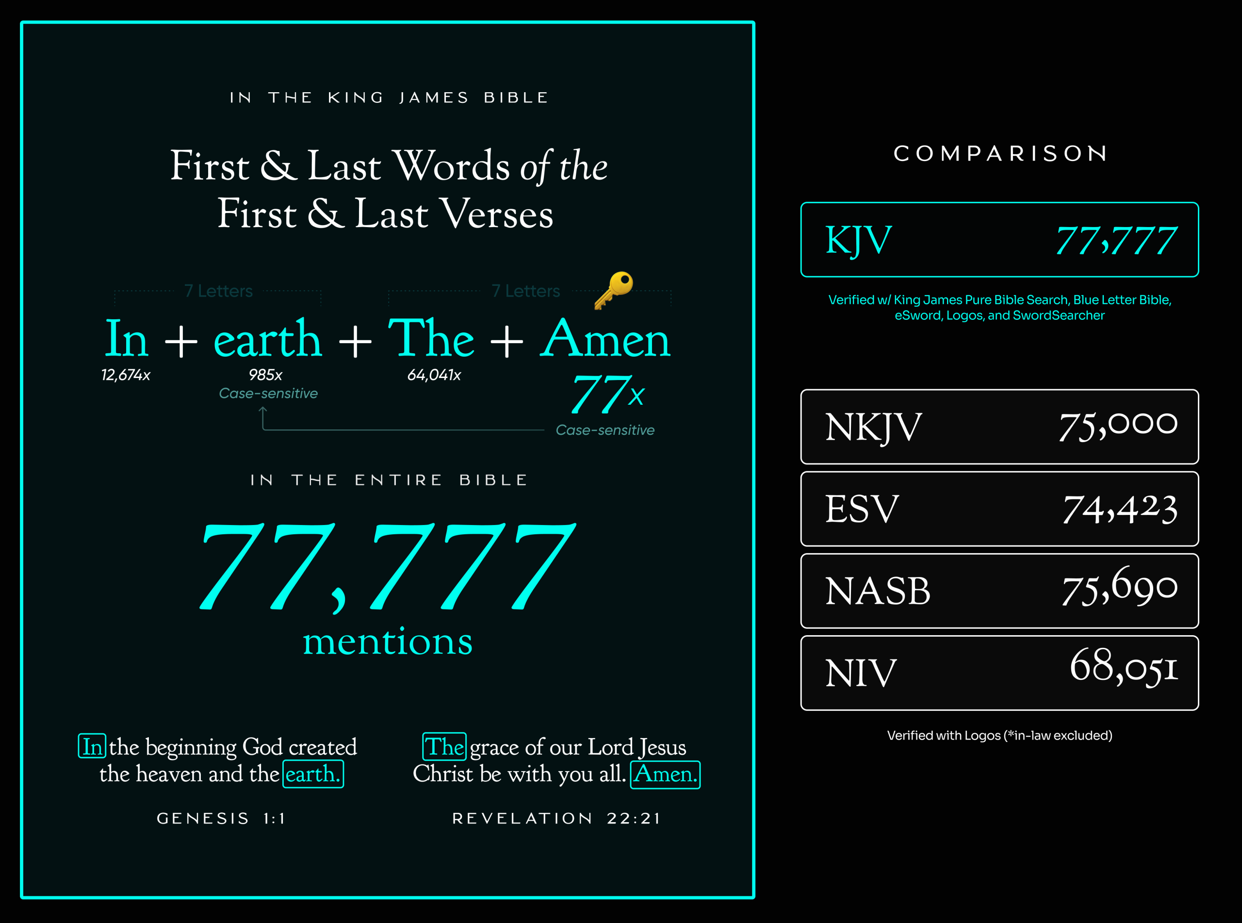 정보출처: https://kjvcode.com/pattern/first-last-words-first-last-verses-77777x/