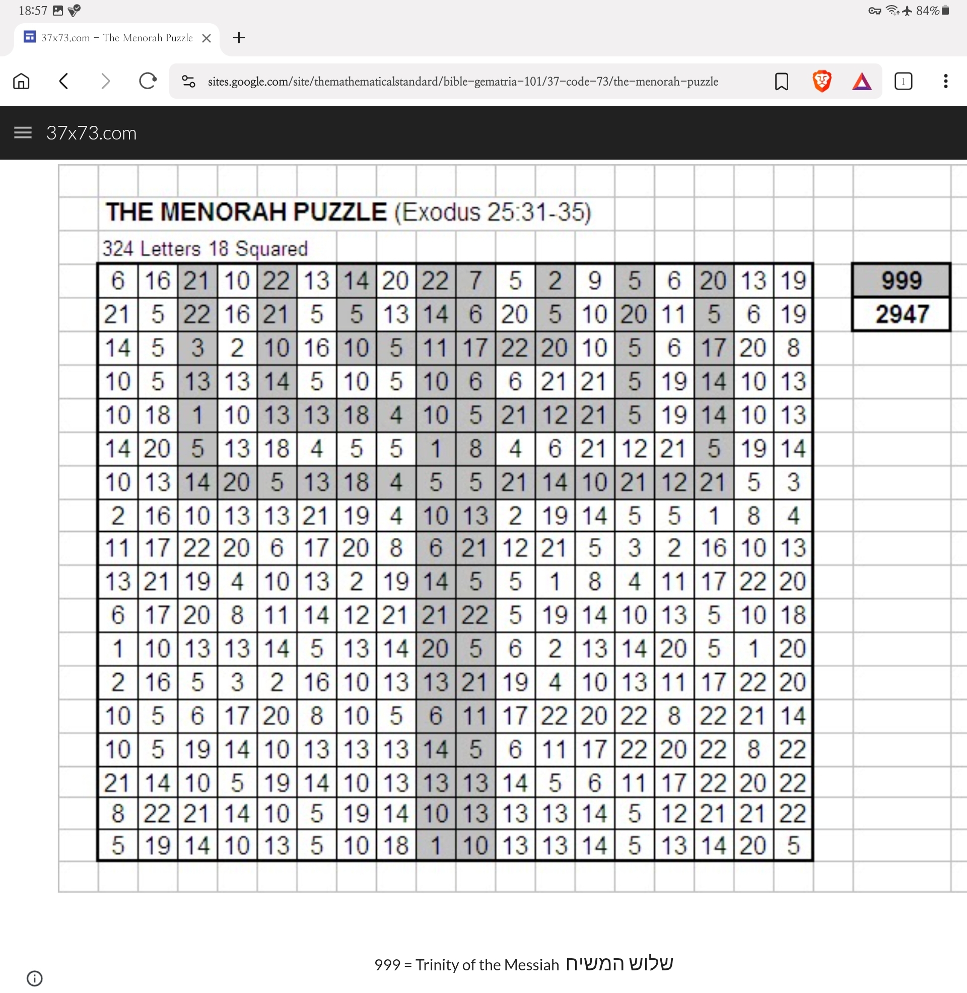 출처: https://sites.google.com/site/themathematicalstandard/bible-gematria-101/37-code-73/the-menorah-puzzle