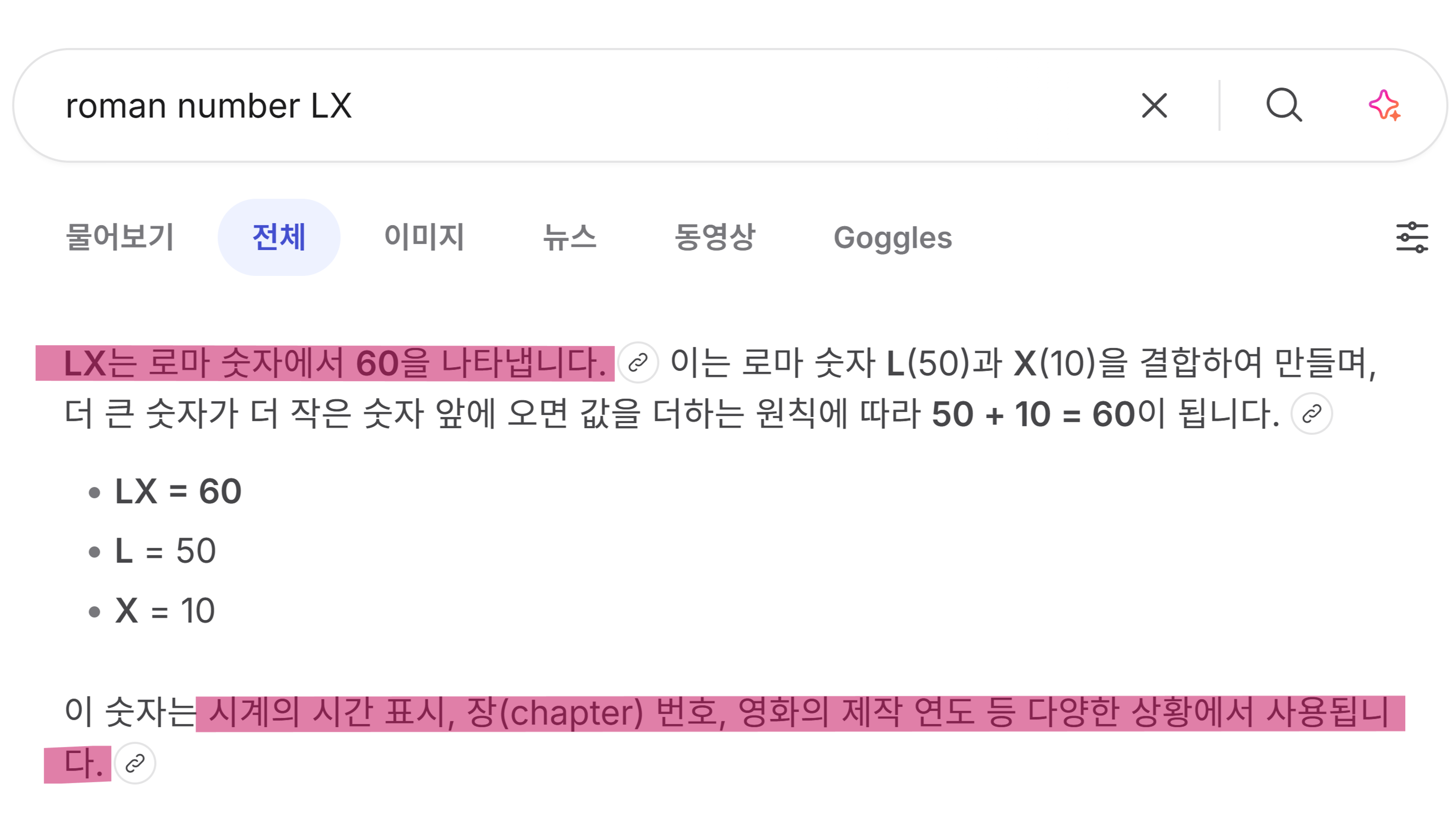 로마 숫자 LX는 60을 의미합니다.