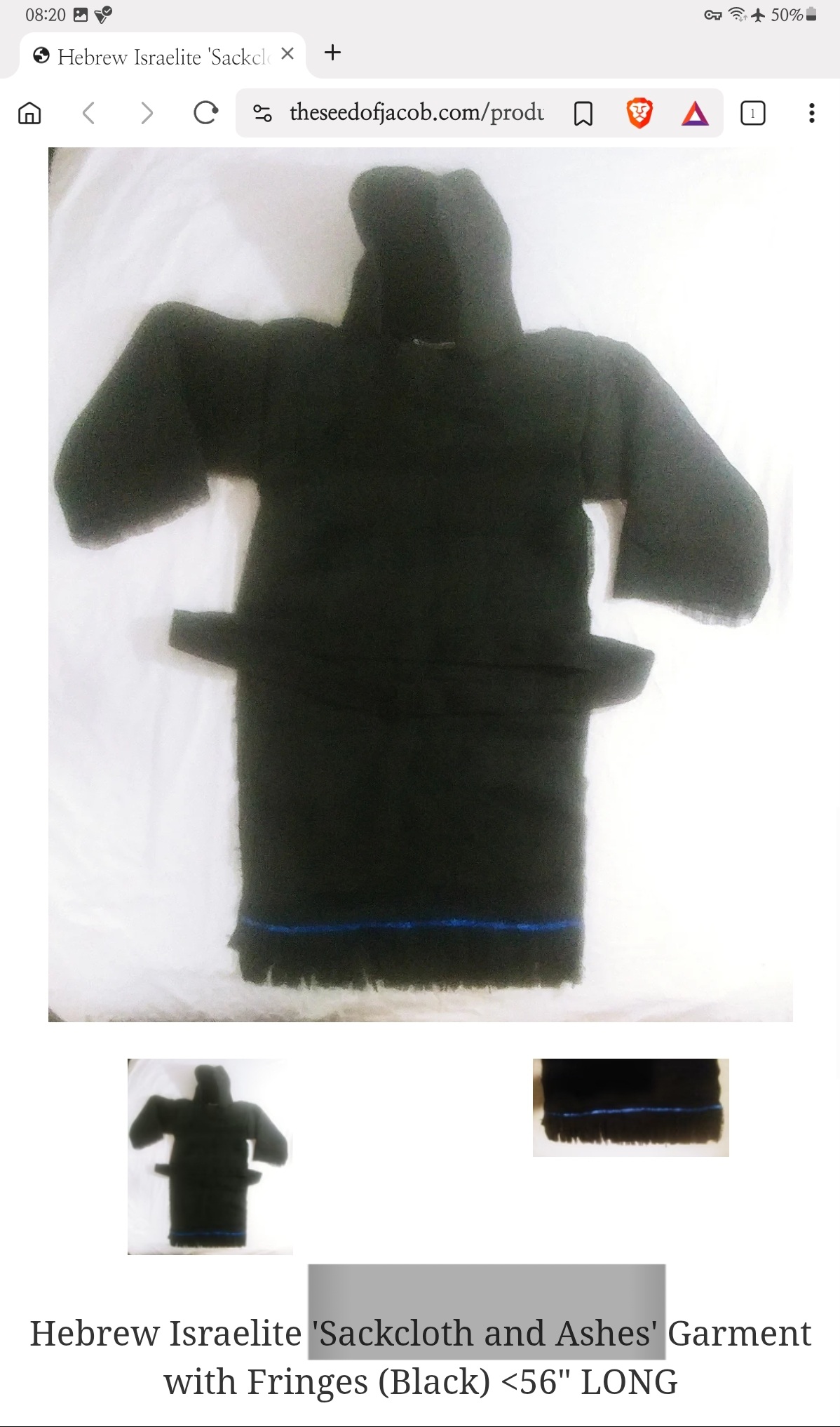 Hebrew Israelite 'Sackcloth and Ashes' Garment with Fringes (Black) <56" LONG