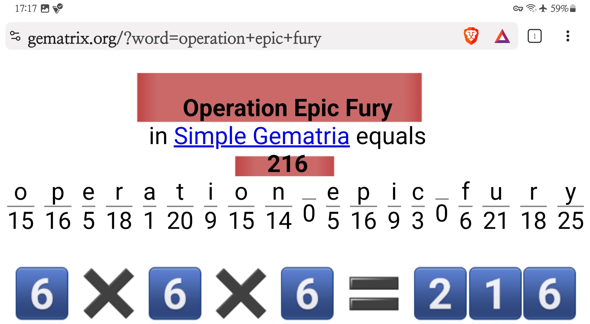 출처: https://www.gematrix.org/?word=operation+epic+furyoperation epic fury value in Gematria is 1158